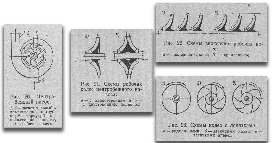 Изготовляются также двухколесные насосы, предназначенные для последовательной и параллельной работы. Для этого патрубки насосов оборудуются специальными переключающими пробками.