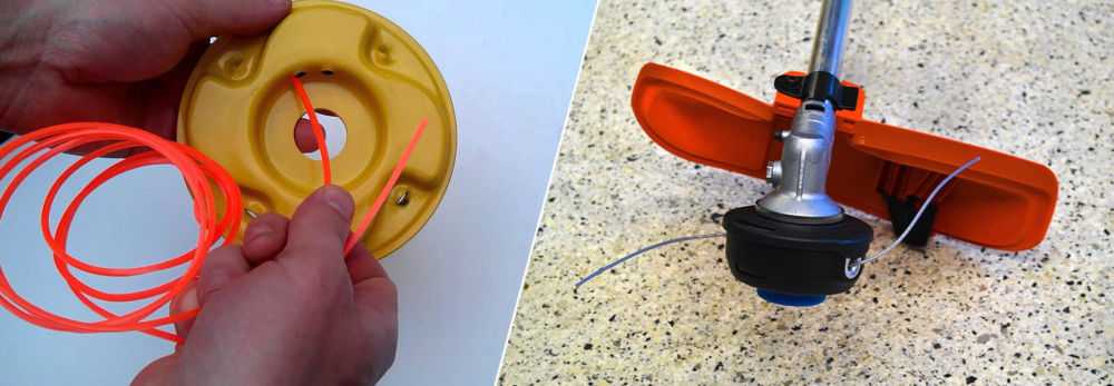 На шпулю может быть намотано от 3 до 10 метров проволоки. В процессе кошения нейлоновая нить стирается, нужно выставлять новые кончики. Существует несколько способов выполнения подобной задачи: