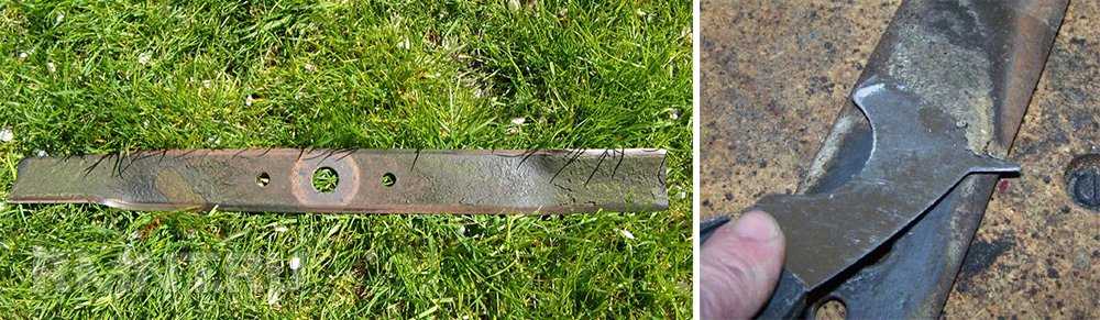 Искривлённое тело лопастей — небольшая проблема, но очень важно, чтобы режущие части были выправлены в одну прямую линию. Также нужно проверить отбрасывающие лопасти, которые часто разгибаются от удара