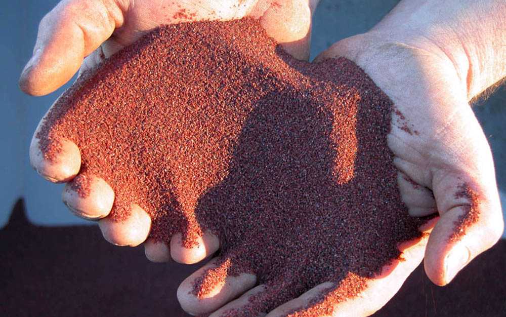 - дроблённый абразивный песок, добываемый из горных кварцевых пород;
