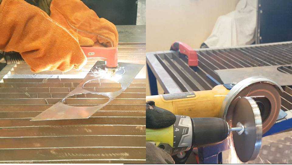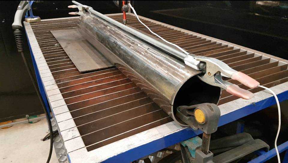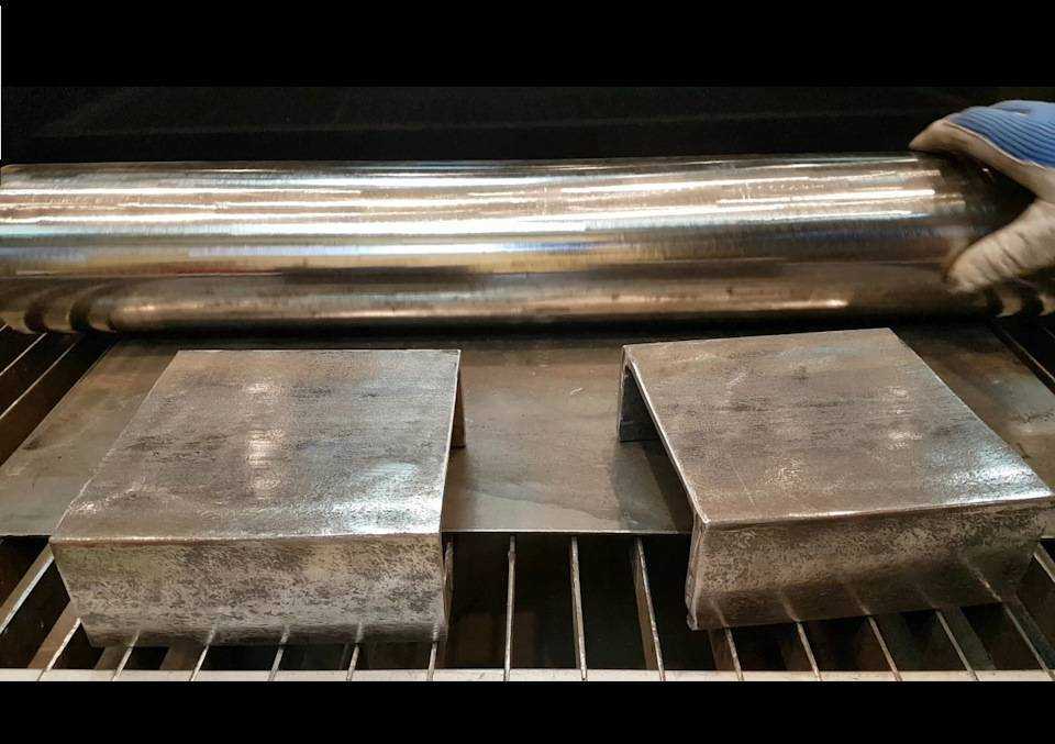 - Оставшийся полый цилиндр трубы разрезается вдоль пополам болгаркой.