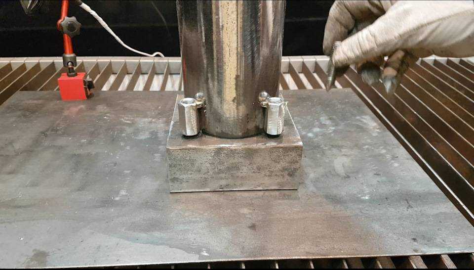 К трубе привариваю 8 проходных гаек М12, по 4 на сторону.
