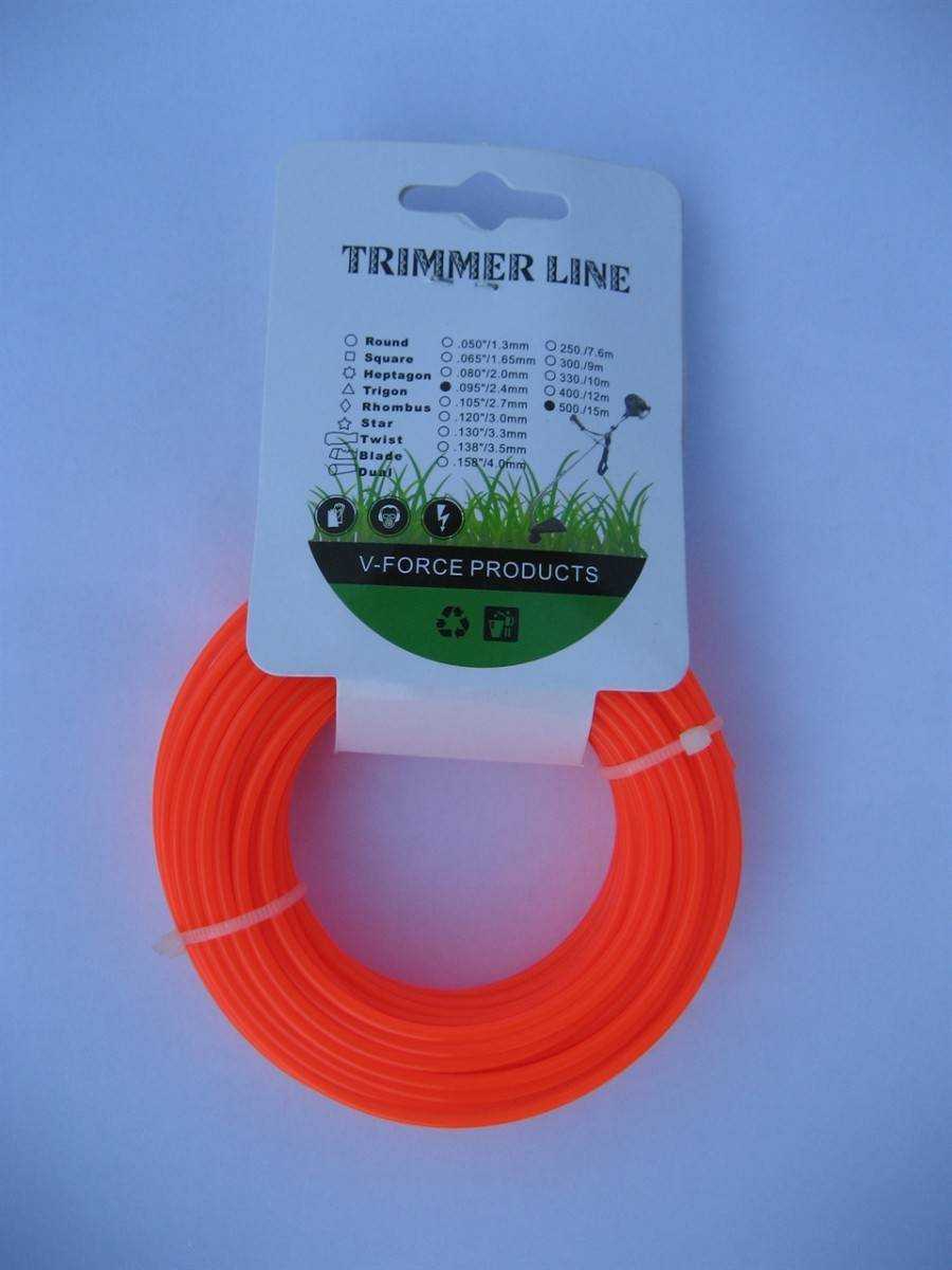 - Квадрат или многоугольник. Такая леска более эффективна, чем круглая – острые углы быстрее и качественнее режут стебли.