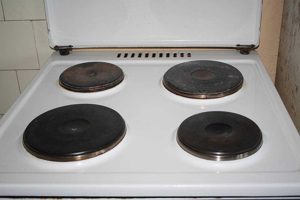 Минусы электрической плиты. Электрическая варочная панель медленно остывает: дети и домашние животные могут обжечься, а содержимое посуды, оставленной на горячей конфорке — выкипеть или пригореть. Если жидкость выкипела, посуду нужно срочно снимать с конфорки.