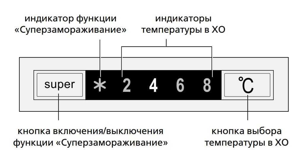 - наличие режимов «Суперзаморозка», «Суперохлаждение», «Охлаждение напитков», «Отпуск»;