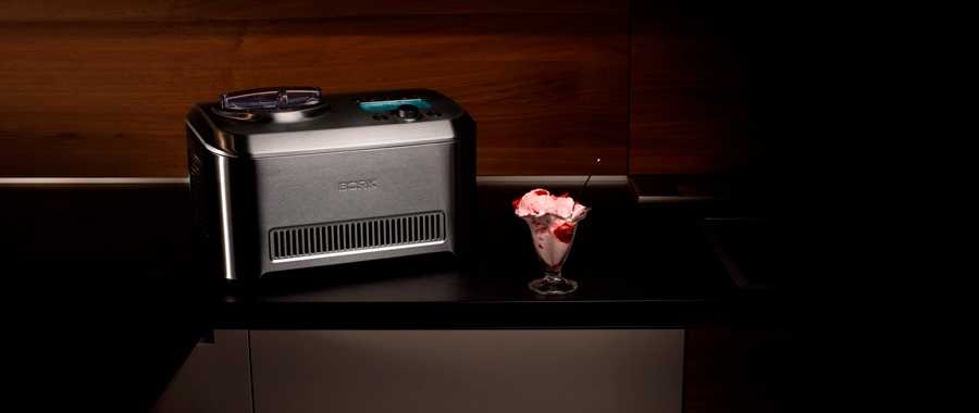 Прибор не требует многочасового предварительного замораживания чаши в морозильнике, а также гарантирует постоянство температуры при приготовлении