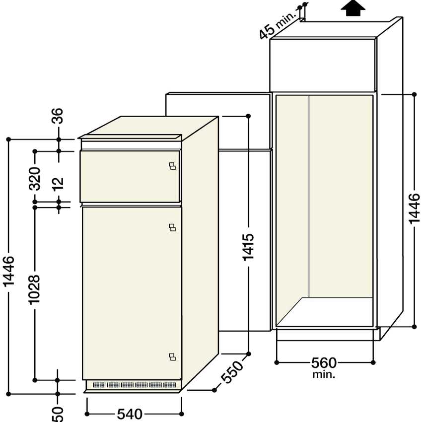 Встроенному холодильнику нужно больше пространства, чем отдельно стоящему. Это необходимо для элементарной вентиляции. Со стороны задней стенки и по бокам оборудования необходимо оставлять по 5-10 см, пусть немного, но для небольшого помещения иногда важен каждый сантиметр пространства.
