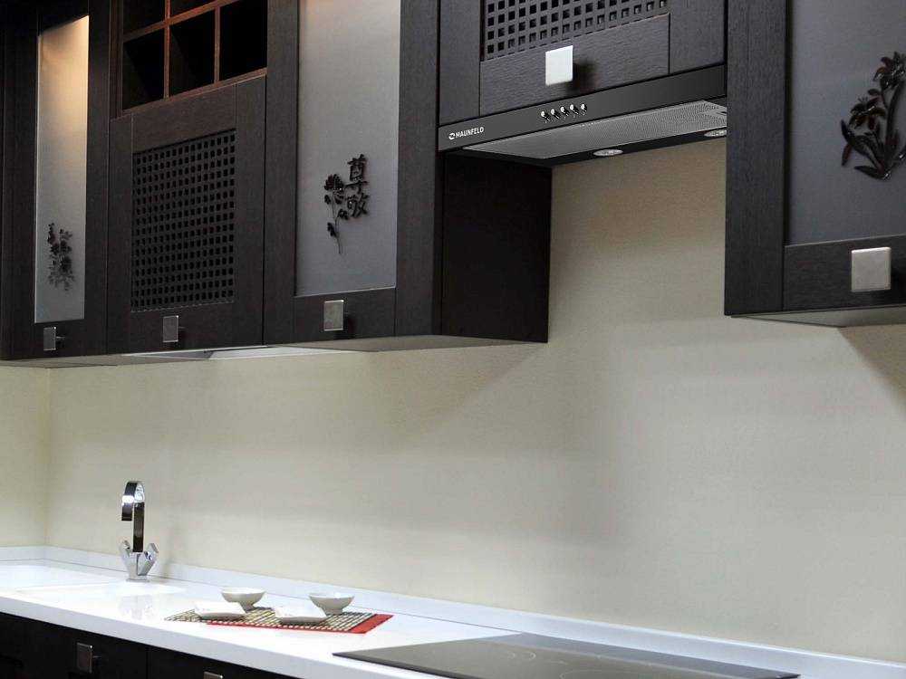 - разнообразие дизайнерских решений оформления плоских вытяжек позволяет подобрать нужный вариант к любому кухонному гарнитуру;