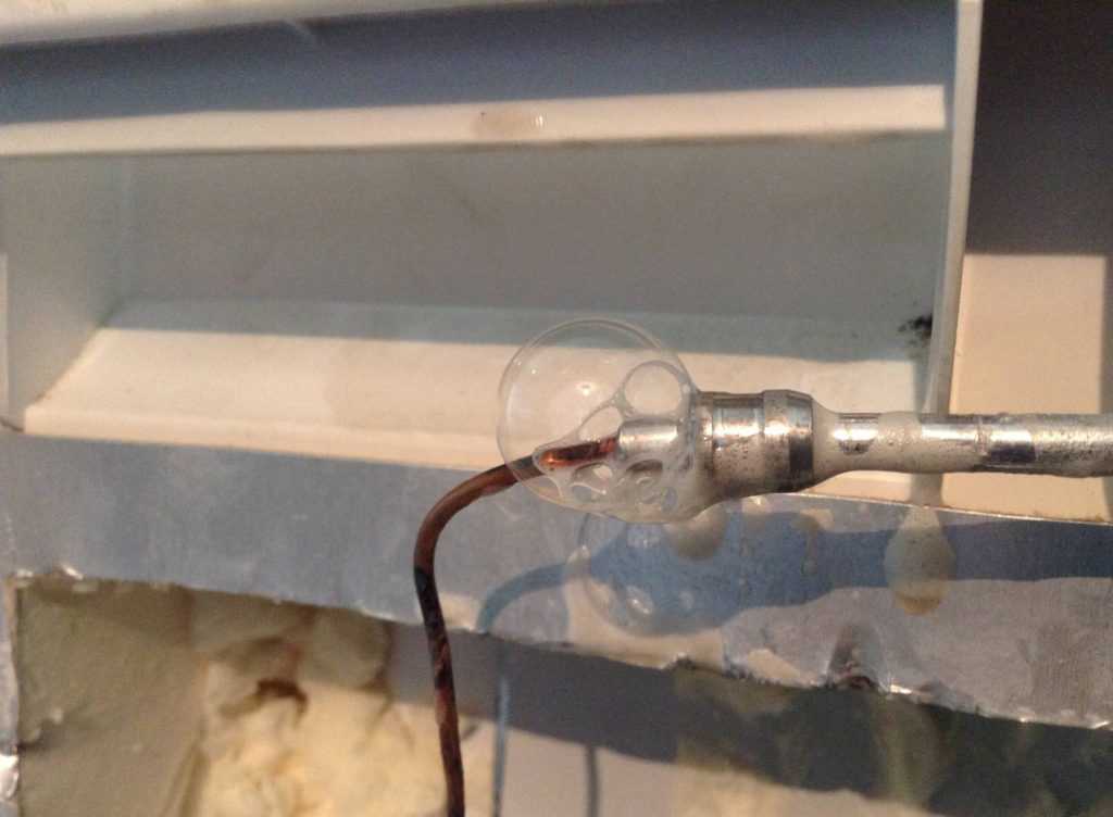 Температурный датчик. Теперь главный модуль не получает информацию о температуре в камере. Поэтому компрессор не получает команды для отключения. Устранить проблему можно, заменив датчик.