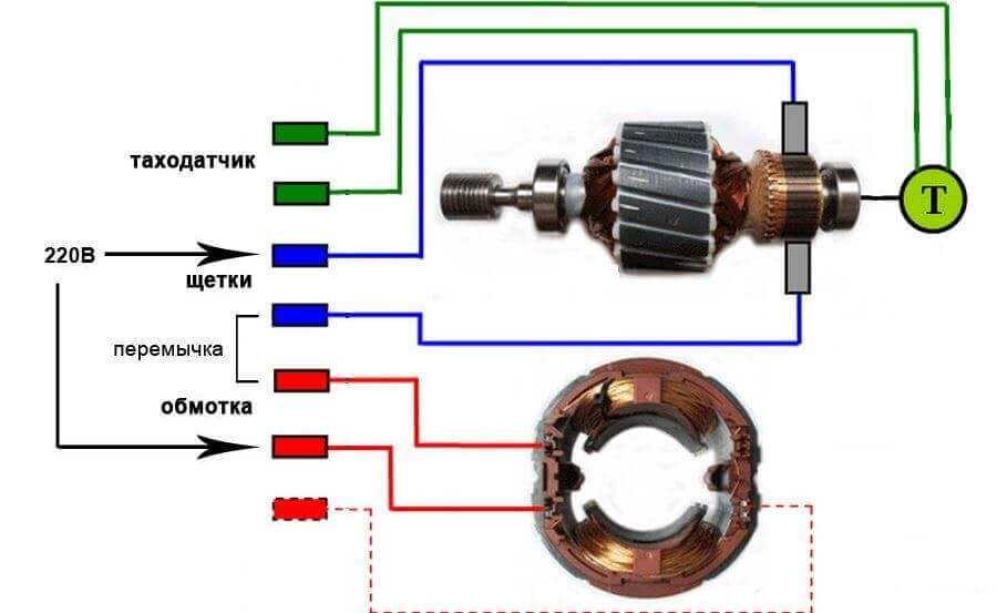 Схема подключения коллекторного двигателя с реверсом