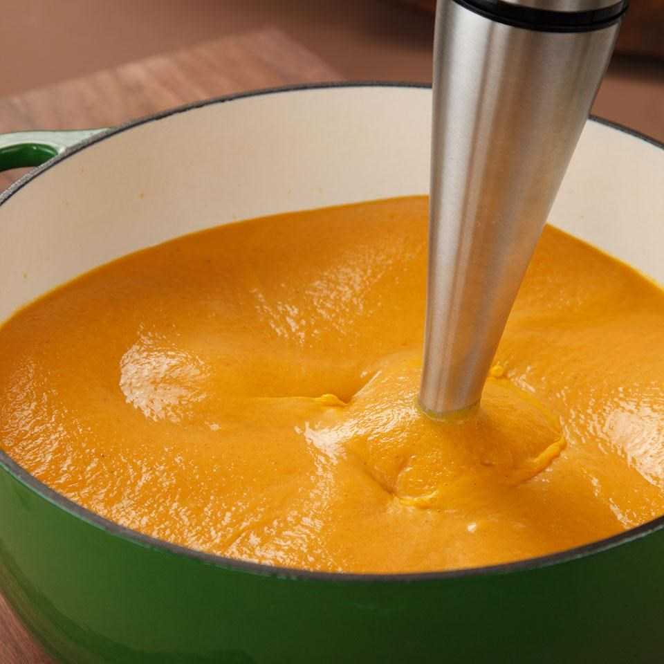 - Для работы подойдет любая посуда. Даже суп-пюре готовится прямо в кастрюле без дополнительных усилий.