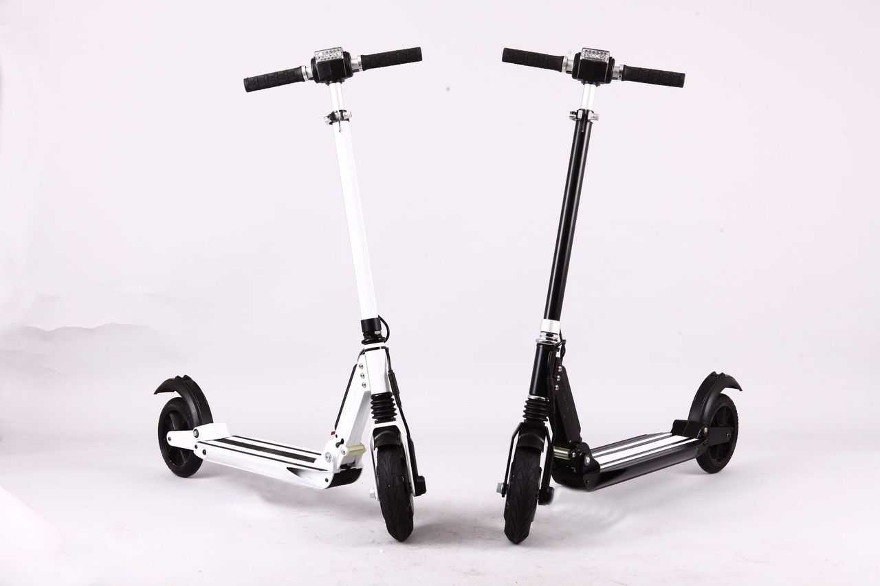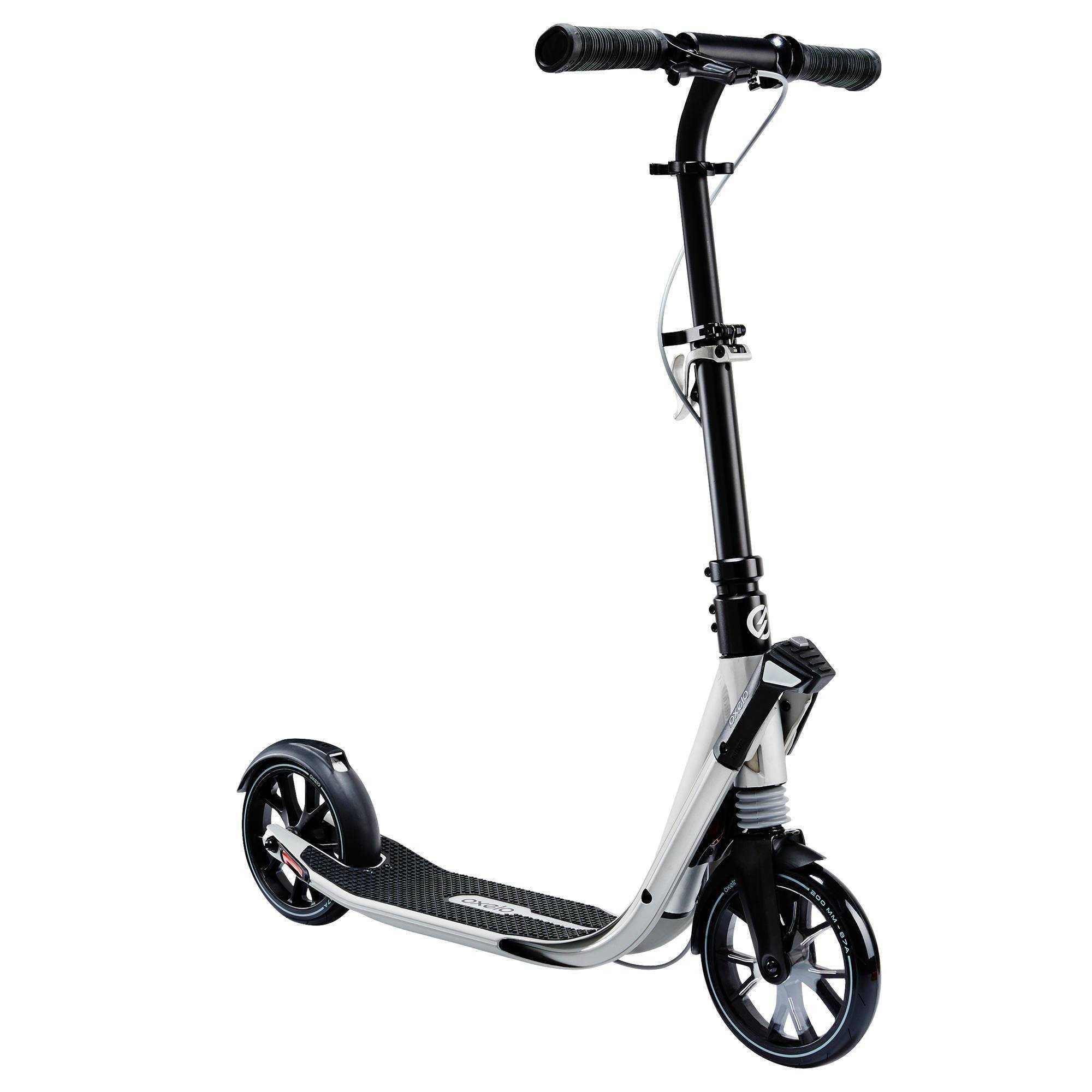 Этот самокат можно назвать воплощением элегантности. Он перевозит до 100 кг, имеет удобный руль с эргономичными рукоятками. Он регулируется от 75 до 98 см. Рама здесь из анодированного алюминия с фирменным механизмом складывания. Есть у самоката выдвигающая подножка, ножной тормоз. Колеса – 200 мм, изготовлены из полиуретана. Вес – 5 кг.