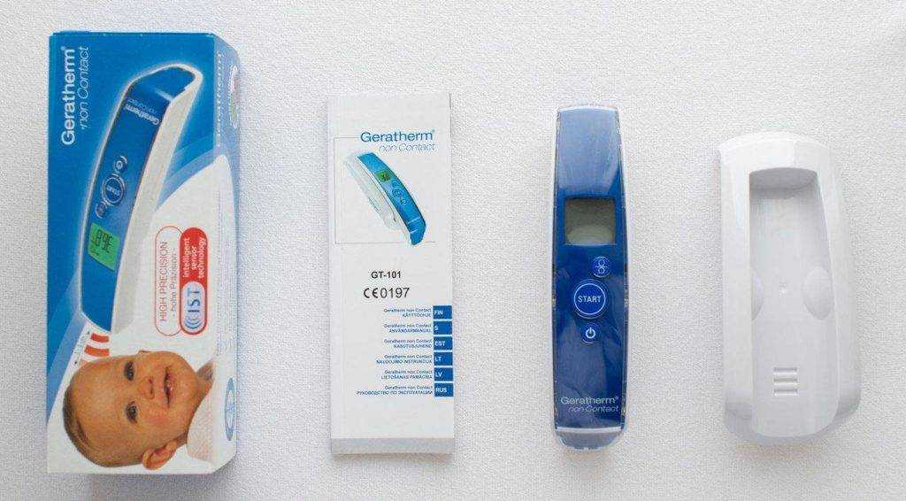 Инфракрасный термометр Geratherm non Contact GT 101 измеряет температуру человека дистанционно, на расстоянии 5 см ото лба, а также температуру окружающей среды, температуру воды в ванной (без погружения), детского питания в бутылочке и любых других предметов. Диапазон измеряемых температур: от 0 до 100 °С. Использование прибора гигиенично, так как процесс измерения температуры происходит без прямого контакта с пациентом, что препятствует переносу вирусов. После каждого измерения не требуется дезинфекция термометра.