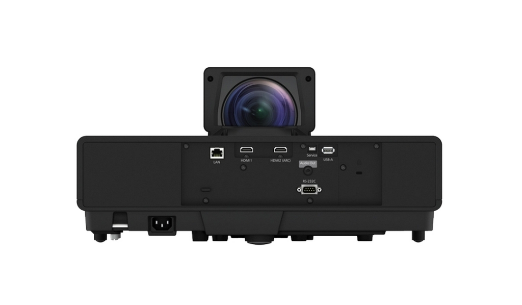 Модель с ультракоротким фокусом, что позволяет устанавливать её на небольшом расстоянии от стены. Максимальная диагональ изображения – целых 120 дюймов, есть поддержка технологий HDR10 и HLG для улучшения качества картинки, высокая яркость и контрастность, позволяющие использовать процессор в условиях нормальной освещённостью.