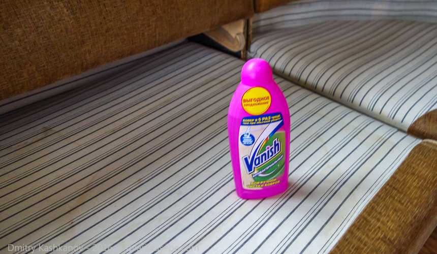 Сначала я хорошо пропылесосила диван обычным пылесосом. Прочитав инструкцию, развела указанное количество средства Ваниш с водой до образования пены. При этом, на бутылочке Ваниш, я не нашла пропорции разведения, потому прочитала в интернете, что нужно разводить его так: 1 часть средства и 9 частей воды. Я не придерживалась строго этой пропорции, разводила на глазок, у меня получилось, что средства я налила 1/3 и воды 2/3.