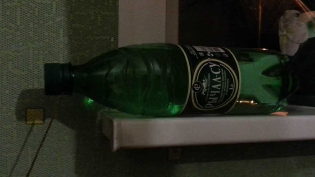В боковой стенке бутылки делается небольшая прорезь. Крышка плотно закрывается, набирается вода.