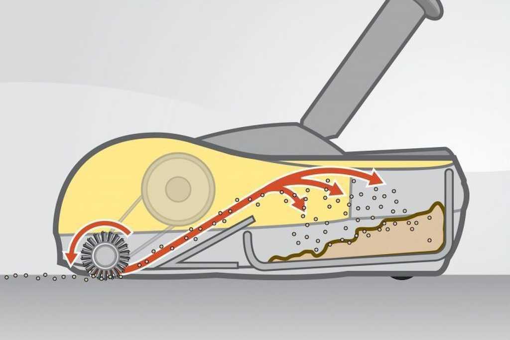 Эффективность уборки зависит от типа щеток внутри короба. Чем плотнее щетина, тем лучше результат. Но важна и длина, т. к. от этого зависит, насколько тщательно веник удалит мелкий сор, при этом щетинки должны пересекаться, когда щетки начинают движение.