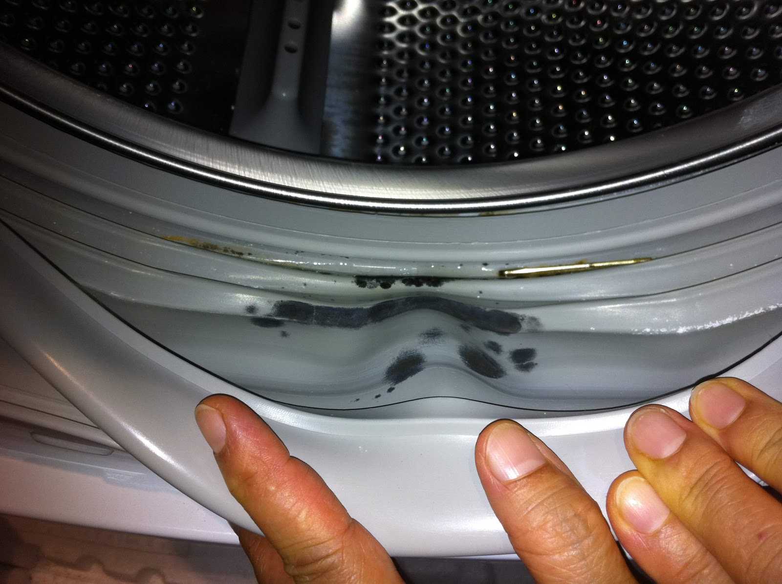 После того, как окончите промывать все узлы и детали в растворе лимонной кислоты, работа еще не окончена. Есть места, прикрытые уплотнительной резинкой, где скапливается плесень. С помощью влажной тряпки и чистящего средства тщательно протереть места за оттянутой резинкой. Закончить процесс протиркой сухой тряпкой.