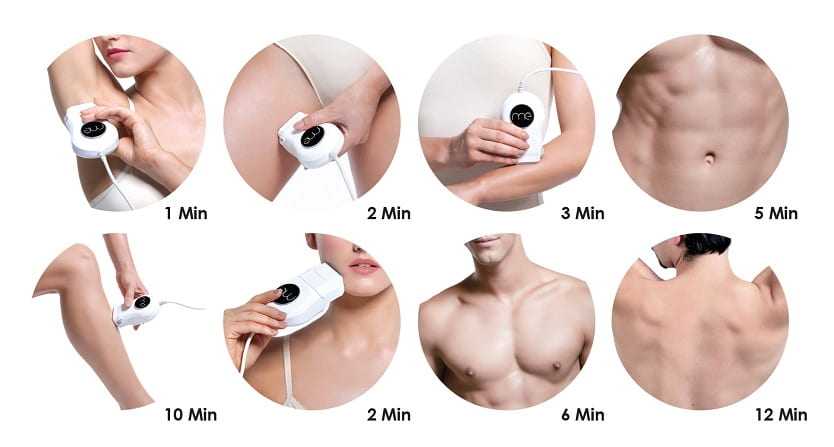 Эта зона обрабатывается за 1 час или 100-150 вспышек. На частичное удаление растительности в области колен, бедер или голеней понадобится 20-40 минут. В процессе использования прибора возможно пощипывание кожи. Косметологи рекомендуют за 3 дня до процедуры полностью сбрить волосы.