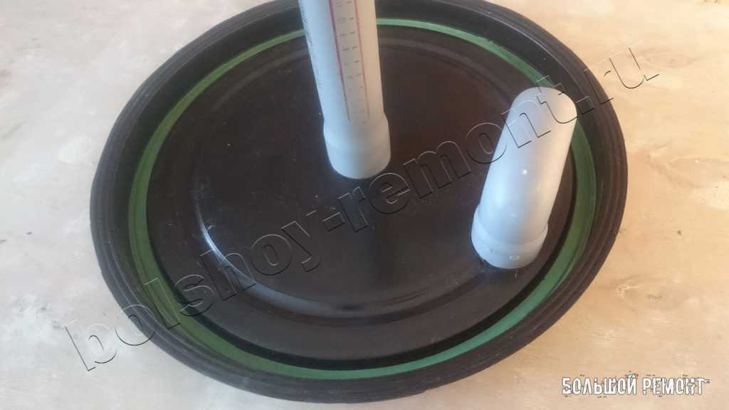 В эти отверстия вставляются два канализационных отвода. Чтобы они надежно держались и не было дополнительного подсоса воздуха, их лучше приклеить.