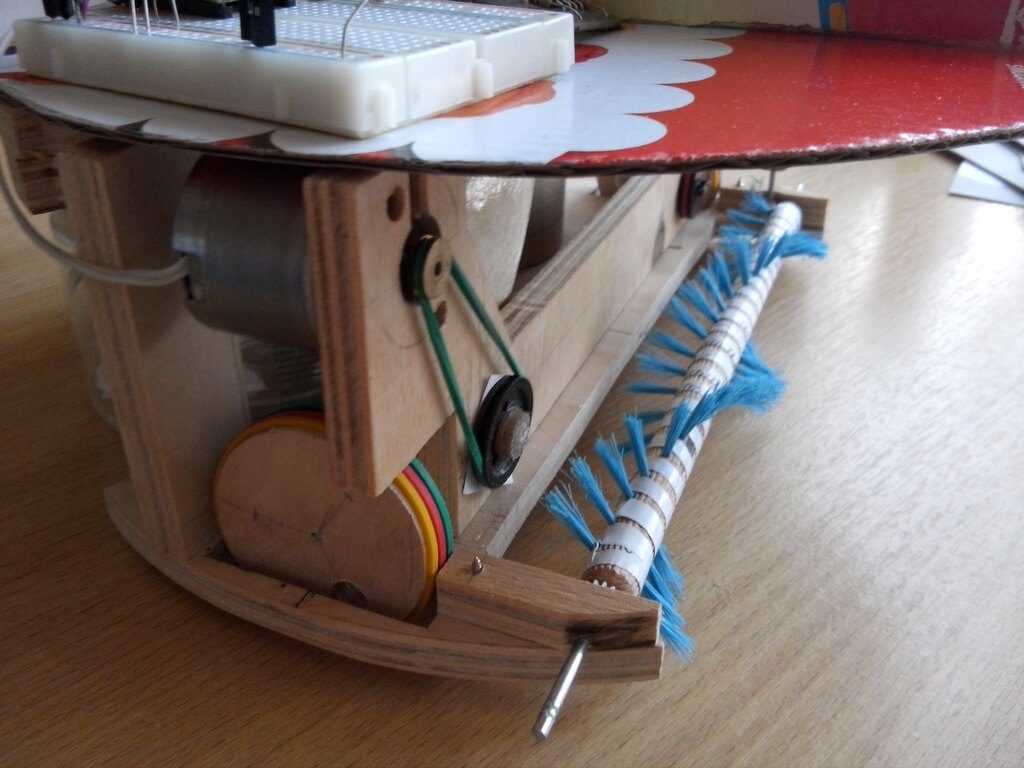 - установка датчиков и микроконтроллера, двигателей с редукторами, аккумулятора, щеток,