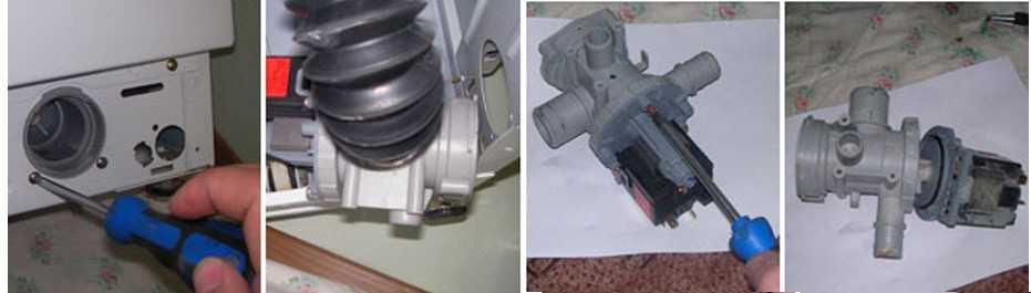 - Проведите чистку сливного насоса и помпы. Посветите в отверстие фонариком и устраните все видимые загрязнения.