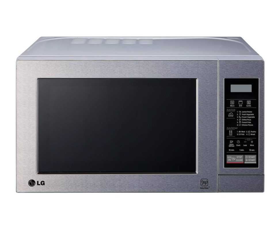 Микроволновки LG — практичные и универсальные помощники на кухне. Плюсами MS-2042DS можно назвать удобное сенсорное управление и цифровой дисплей. Есть функция автоматического приготовления. Рецепта всего три, поэтому они подойдут разве что для тестирования прибора. Покрытие внутренней части корпуса — эмаль с защитой от жира и загрязнений. Из недостатков выделим слишком короткий шнур.