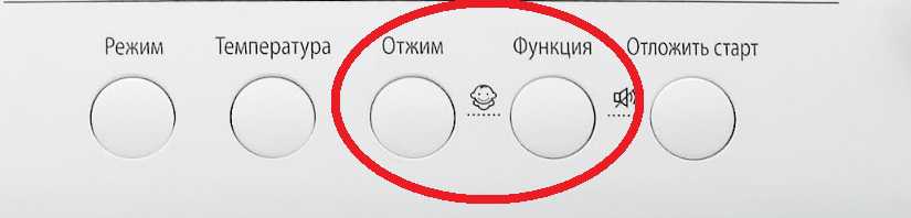 Отключение машины от сети не поможет снять блокировку. Нужно одновременно нажать на клавиши «Отжим» и «Функция». Убедитесь, что на дисплее больше не высвечивается замок.