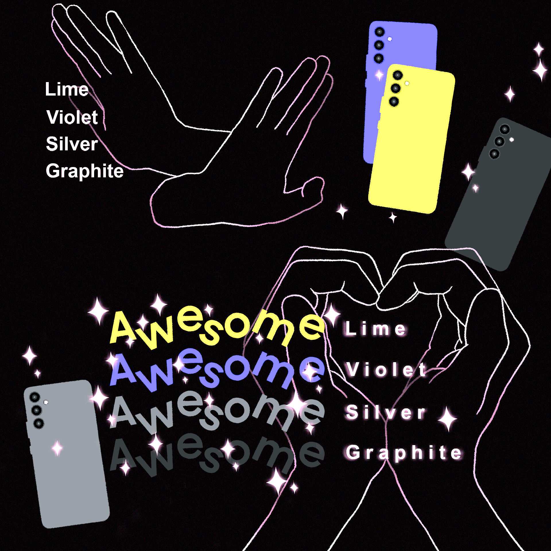 Удивительный серебристый, потрясающий лаймовый, замечательный графитовый — такие цвета привлекают внимание