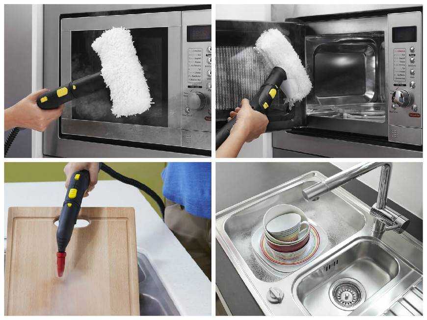 Вообще, пар, подаваемый пароочистителем, хорошо борется с жирными или пищевыми загрязнениями на кухне, с плесенью и налетом в ванне и туалете. Он также быстро удаляет несложные пятна с мягкой мебели освежает текстиль и листья комнатных растений, а также дезинфицирует детские игрушки.