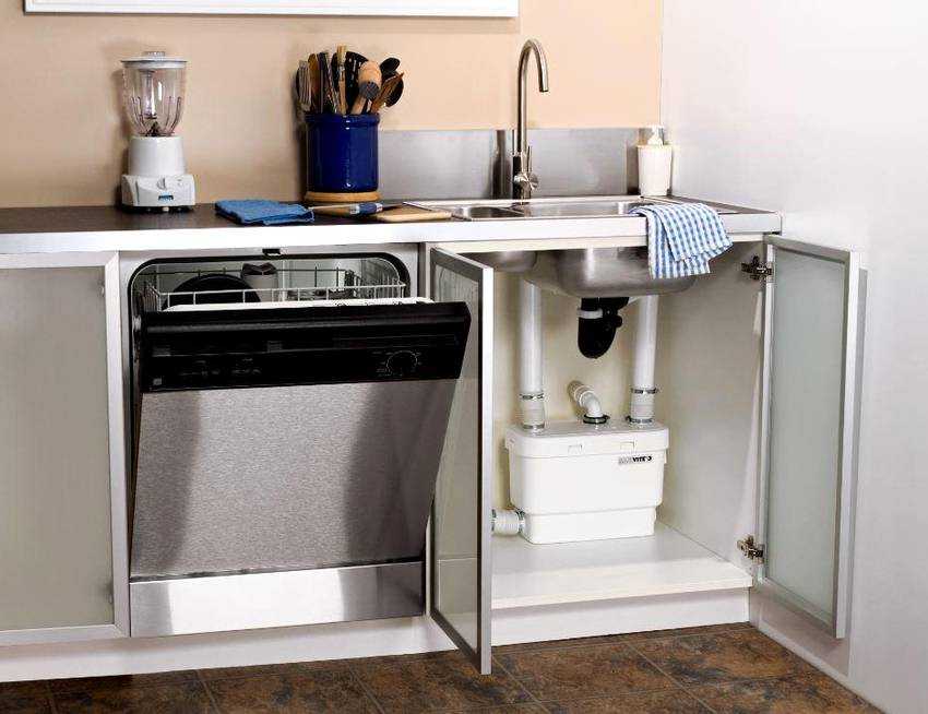 При отсутствии возможности встроить посудомойку куда-либо остается последний вариант — установка на пол или на стол. Существуют варианты переустановки гарнитура с переносом систем коммуникации. Такой метод требует времени и финансовых затрат. Самым экономичным вариантом считается монтаж фасада на машину.