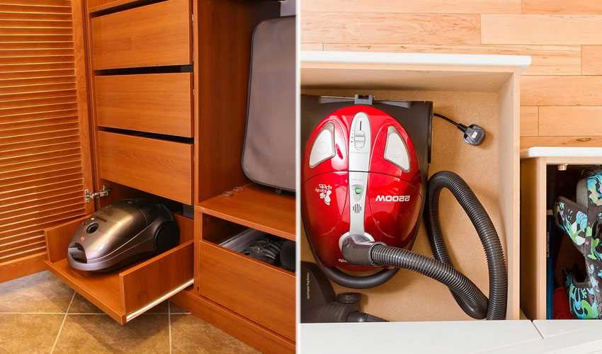 Сохранять пылесос работоспособным лучше при хранении в квартире. Для этого есть укромные места. Популярные варианты: