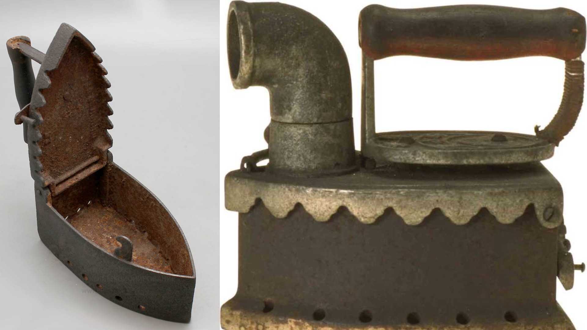 В середине прошлого века были широко распространены утюги «углевого» и «духового» типа, напоминавшие печь: в них закладывали накаленные угли. Эти утюги имели слишком большой вес. Чуть позже его немного изменили и на замену углям начали класть накаленный кусок чугуна.