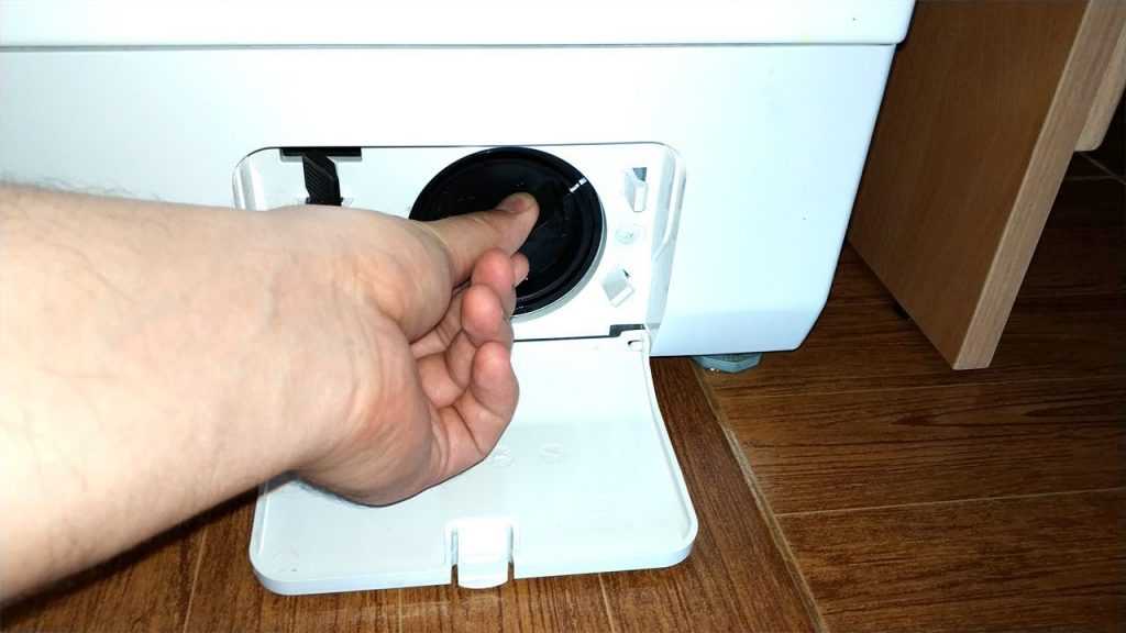 Еще одной причиной, по которой пошла вода из левого или правого нижнего угла машинки, может быть засор отсека, в котором скапливаются посторонние вещи. Монетки, пуговицы и замки, после стирки очень часто оказываются там. Для этого нужно снять нижнюю панель, открутить крепление, и достать все детали. Запаситесь тряпками, ведь при открытии очень часто льется вода. Продолжайте работу когда убедитесь, что вода вытекла.