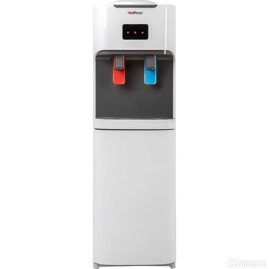 Из дополнительных функций пользователи отмечают систему защиты от детей. При установке в квартире владельцы могут не переживать, что малыш случайно обожжётся горячей водой. Что касается производительности, то в случае нагрева она составляет 6 литров в час, при охлаждении 2 л/ч. Прибор отличается стильным дизайном, он хорошо впишется в любой современный интерьер. При необходимости можно приобрести Vatten V45WKB в одном из пяти цветовых решений. Этот кулер заслуженно занял лидирующую позицию и, безусловно, достоин внимания потенциальных покупателей.