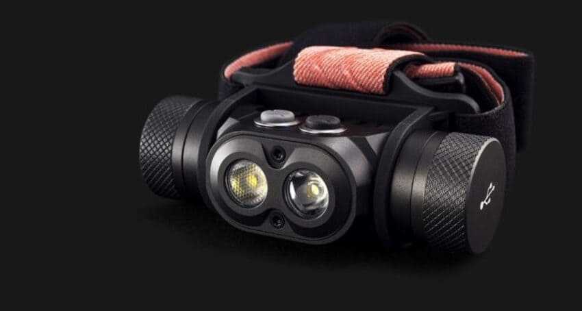 Водонепроницаемый маленький налобный фонарь, имеющий выносную компоновку. Алюминиевый ударопрочный корпус. Дальность светового потока достигает 200 м. Управление реализовано через одну кнопку, которой можно выбирать 1 из 3 режимов работы и регулировать яркость от 10 до 80%. Повышенная автономность фонарика обеспечивается четырьмя аккумуляторами 18650, установленными в отдельном блоке. Вместе с ним девайс весит 275 грамм. Из недостатков только цена.