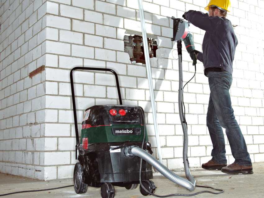Многие модели современного инструмента имеют систему, предназначенную для отвода строительного мусора. Например, штроборезы всегда применяются в связке с пылесосами. Это позволяет не только увеличить скорость обработки, но и сохранить точность. Система отвода имеет вид патрубка, который подсоединяется через шланг к строительному пылесосу для штробореза.