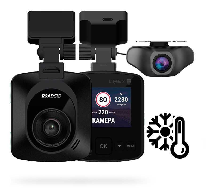 Превосходная ночная съемка, оптическая стабилизация и оповещения о камерах ПДД. Благодаря использованию суперконденсаторов, устройство устойчиво к морозу и летнему солнцу, что обеспечивает стабильную работу и продлевает срок службы. Вторая камера (в комплекте) пишет в разрешении 1920х1080, водостойкая. Встроенный WIFI позволяет просматривать и делиться видеозаписями через смартфон. Базы камер ГИБДД регулярно обновляются. Новинка от Roadgid уже успела заслужить доверие российский водителей, предпочитающих премиальную электронику.