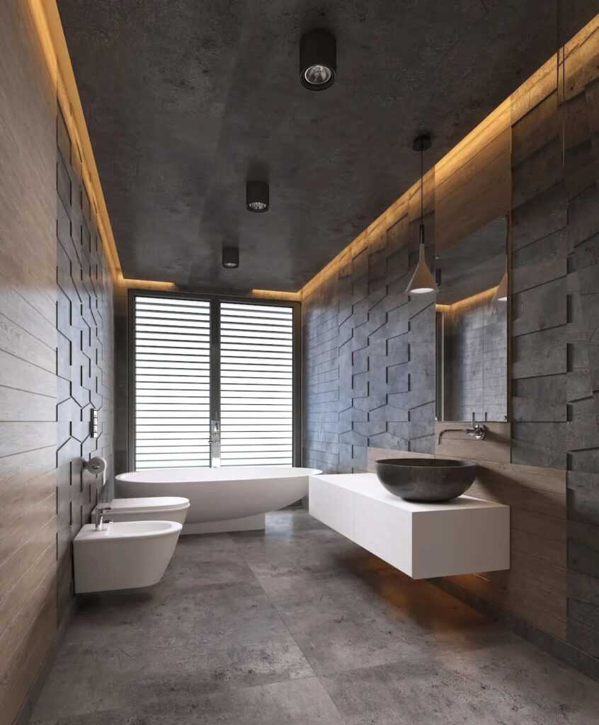 Освещение бухты это отличный способ осветить потолок вашей ванной комнаты. Для такого освещения требуется подвесной потолок, который скрывает светильники. Таким образом, светильники не создают прямого ослепления. Вместо этого он направляет свет вверх и отражает свет в соседних стенах. Таким образом, освещение бухты освещает всю ванную комнату. Кроме того, это придает эстетичный вид вашей ванной комнате. При выборе светильника для освещения бухты лучше всего подходят светодиодные ленты. Вы можете пойти на перестраиваемые белые светодиодные ленты чтобы изменить тон вашей ванной комнаты в соответствии с вашим настроением.