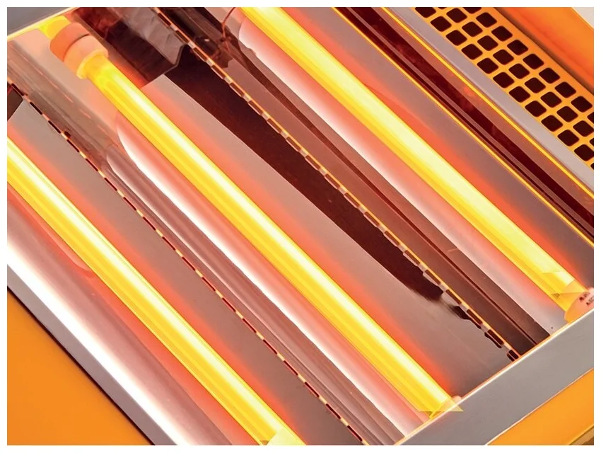 Представляют собой кварцевую пластину с нагревательным элементом внутри. Работает с применением ИК-излучения, что делает его обогрев похожим на солнечную энергию. Простая и эффективная конструкция позволяет достичь 100% КПД.