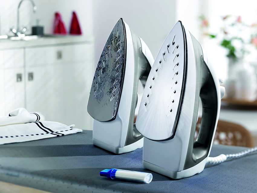 Домашние способы чистки утюгов отличаются в зависимости от материала, из которого изготовлена подошва. Основные способы очистки основания от нагара: