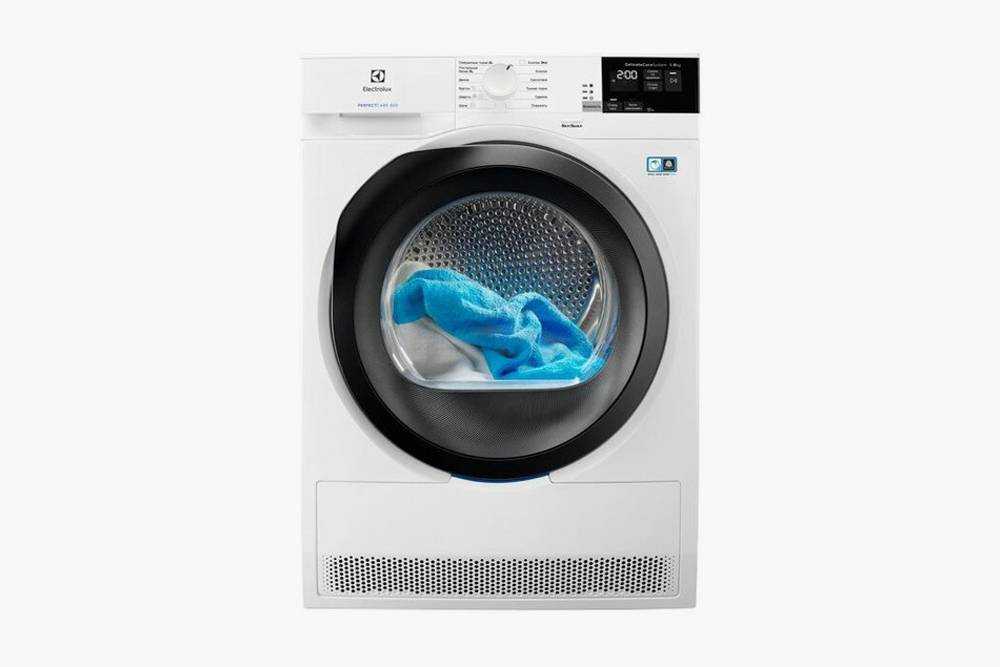 Ребята, сушильная машина — это топ. Я, правда, взял одну из самых дорогих среди бытовых — Electrolux Perfectcare 800. Вы сейчас посмотрите цену и подумаете: «Сколько-о-о?» Но она того стоит. Да, это в два-три раза дороже стиральной машины. Но вы кладете туда вещи сразу после стирки — и она их высушит, сделает мягкими и разгладит большую часть. Особенно актуально, если у вас дети и стирка с глажкой кажутся чем-то перманентным. Детская одежда без глажки очень грубая и неприятная на ощупь. Вы можете исправить это утюгом, но с сушильной машиной в разы проще и быстрее. Плюс вы экономите место: нет этой огромной раскидистой сушки на полкомнаты или полкоридора. Если позволяет глубина стиральной машины, вы можете поставить сушку на нее.